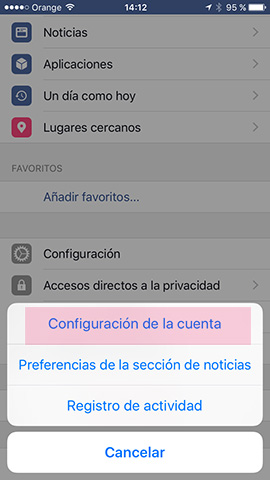 Dentro de configuración, debemos señalar configuración de la cuenta