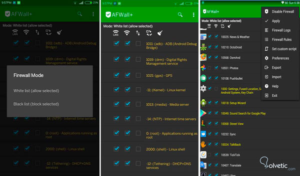 Es un cortafuegos para nuestro dispositivo, y como tal su función principal es bloquear las conexiones entrantes o salientes de nuestro equipo, es perfecto para cuando instalamos aplicaciones de origen desconocido en las cuales no confiamos y sospechamos que se estén aprovechando de nuestra conexión de datos para enviar información. Su interfaz es muy sencilla aunque por el momento está en inglés, nos permite seleccionar cuales aplicaciones pueden conectarse a la red gracias a su modo de "lista blanca" pero también es capaz de bloquear cualquier conexión para aquellas aplicaciones que hallamos incluido en la "lista negra". Cabe destacar que requiere acceso root.