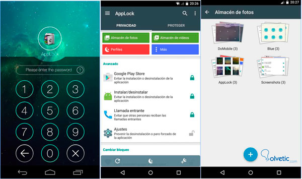 Esta aplicación funciona como una bóveda de seguridad que protege con contraseña a aquellas aplicaciones, fotos, videos o perfiles a los cuales no quieres que usuarios indeseados tengan acceso, de este modo podrías prestar tu móvil para jugar sin tener que preocuparte porque puedan abrir algo que tu no quieras… Es muy configurable y puedes elegir si bloquear por contraseña o por patrón. Y además tiene una función que particularmente la diferencia del resto y es que puedes elegir ubicaciones de bloqueo con la ayuda del gps. Por ejemplo podrías configurarla para que solo actué cuando estés en tu casa o en trabajo, algo interesante sin duda.