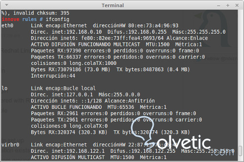 Para comprobar las conexiones o de interfaces de red disponibles, desde una ventana de terminal escribimos el siguiente comando: