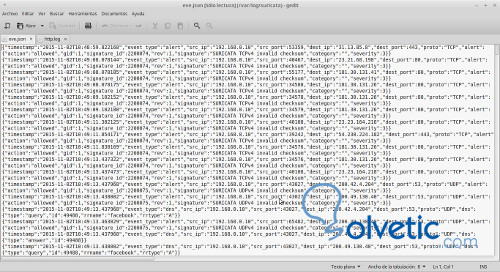 cd /var/log/suricata tail http.logEsto nos mostrará un listado con la fecha la hora y la web o la ip a la que se accedió y a través de que puerto. Si miramos el archivos statslog, podremos observar, el flujo de tráfico y las alertas detectadas, debemos distinguir la páginas que navegamos de aquellas que se redireccionan mediante publicidad.
