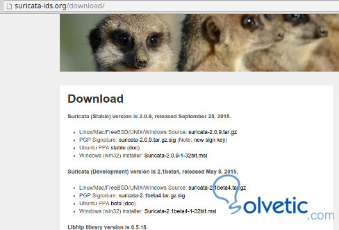 Suricata se puede utilizar en cualquier plataforma Linux, Mac, FreeBSD, UNIX y Windows lo podemos descargar desde su pagina oficial o bien si tenemos Linux instalar desde los repositorios.