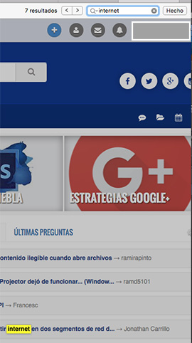 En ese momento va a aparecer un pequeño buscador en la parte superior de la pantalla. En el debemos escribir nuestra palabra de búsqueda. En el caso de que queramos que sea una frase, es mejor escribirla entre comillas, para que la búsqueda sea mas concreta.