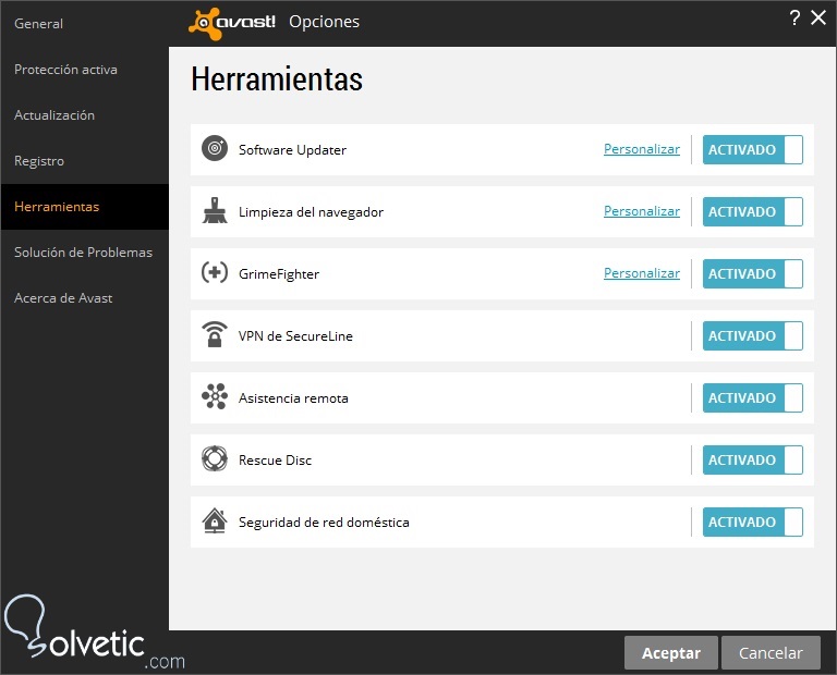 Para esta tercera opción, denominada Herramientas, como su nombre lo indica, podremos contar con una serie de instrumentos que nos ayudarán durante nuestra estadía en los escudos de Avast. Todos estos con una funciona totalmente única e indispensable en el funcionamiento del programa y por supuesto, nuestro ordenador.