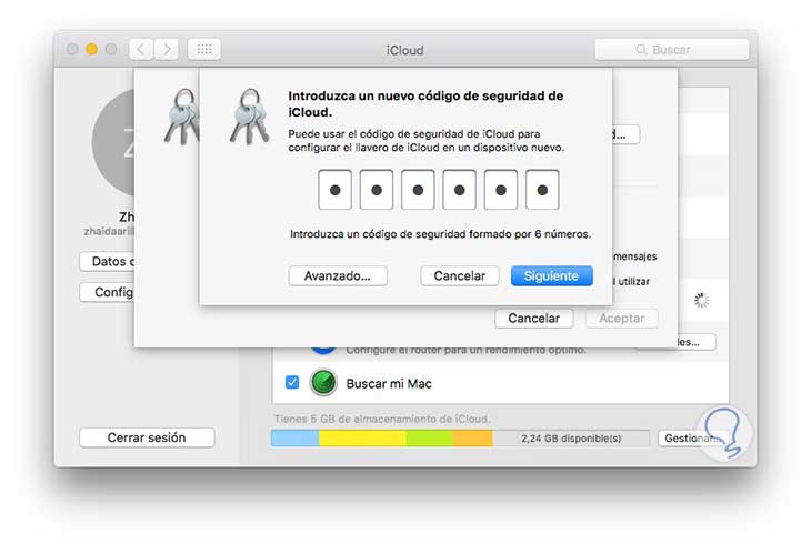 Ahora es el momento de que selecciones llavero. Nos van a pedir la contraseña de nuestro ID de Apple. Una vez que ya hemos registrado nuestros datos, podemos seguir con el proceso de configuración. Lo primero es introducir un código de seguridad. Este código de seguridad se utiliza para que otros dispositivos adicionales puedan utilizar el llavero iCloud.
