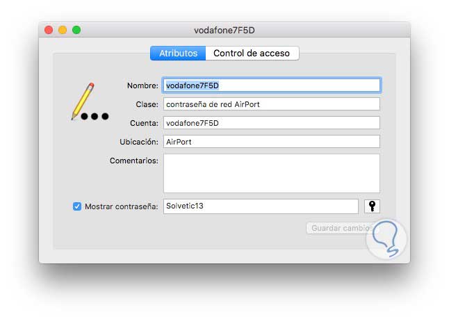 A continuación se va a abrir una ventana en la que tenemos que seleccionar mostrar contraseña. Cuando lo marquemos, tenemos que introducir nuestra contraseña del llavero en una ventana emergente. Una vez introducida, se mostrará la contraseña que estamos buscando.