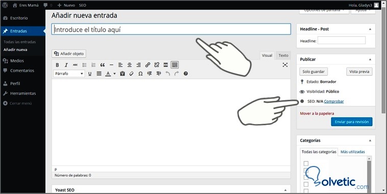 Para responder esta pregunta realizaremos "paso a paso de un caso práctico" con toda la secuencia para el ingreso de un post para ir validando progresivamente el SEO On Page hasta que sea dado de alta.