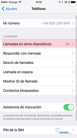 Entra las opciones que podemos encontrar dentro de teléfono, tenemos que seleccionar “Llamadas en otros dispositivos”