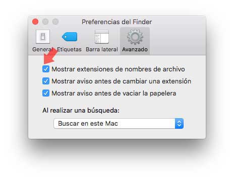 Cuando almacenamos en nuestro disco duro o memoria SSD archivos, en OS X por defecto no podemos ver las extensiones de estos archivos. Si queremos configurar nuestro Mac para poder verlo, podemos hacerlo de una manera muy sencilla. Lo primero que tenemos que hacer es abrir el menú del Finder y seleccionar “Preferencias” Los siguiente que debemos hacer es selecciona “Avanzado” y activamos la casilla de “Mostrar extensiones de nombres de archivo”.