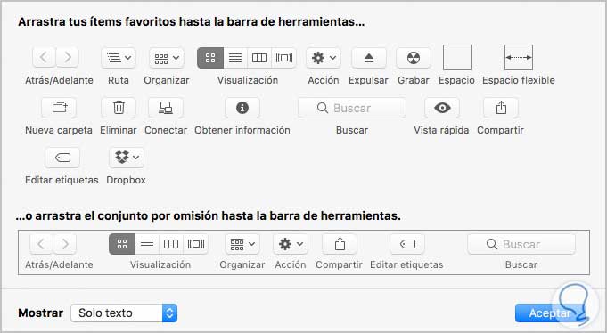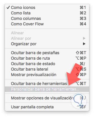 Para este proceso debemos abrir la ventana principal del Finder y seleccionar “Visualización” en el menú principal “Personalizar barra de herramientas”.