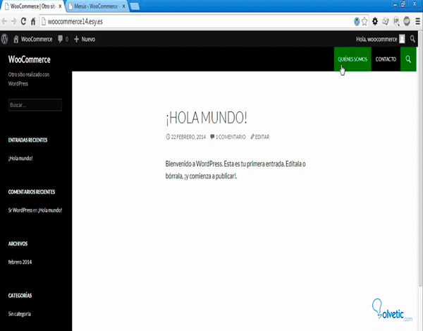 Por ultimo hacemos clic en el botón “Guardar Menú”. Y si chequeamos nuestra web podremos ver que ahora solo hay dos opciones en nuestro menú superior que corresponden con las que hemos seleccionado previamente.