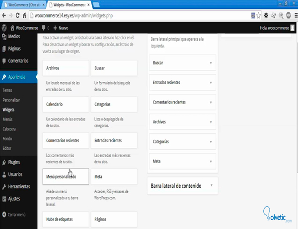 Para esto presionamos el botón guardar menú y posteriormente vamos a la opciones de Apariencia y seleccionamos Widget.