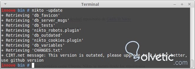 Nikto actualiza periódicamente sus repositorios para añadir versiones de cada uno y actualizar nuevas vulnerabilidades que van surgiendo. Como lo haría un antivirus, en este caso el repositorio utilizado por Nikto es la base de datos de vulnerabilidades en la web http://osvdb.org/