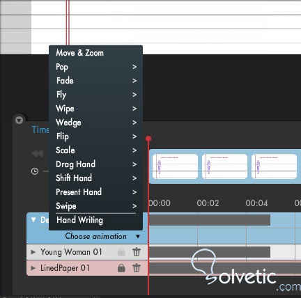 Para que las imágenes o el texto entren, salgan o permanezcan en la presentación con algún efecto, tenemos que seleccionar el objeto que queramos, y a continuación en la barra inferior seleccionar entre los efectos existentes.