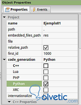 wxFormbuilder permite generar código en C ++, Python, PHP, Lua y el código XRC. El codigo se va creando a media que vamos diseñando.