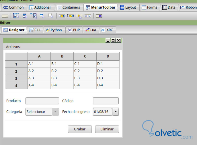 wxFormBuilder es una herramienta de desarrollo visual, La gran ventaja es que puede generar código en C ++, Python, PHP, Lua y XRC mientras se va diseñando. Funciona en Windows, Linux y Mac Os.