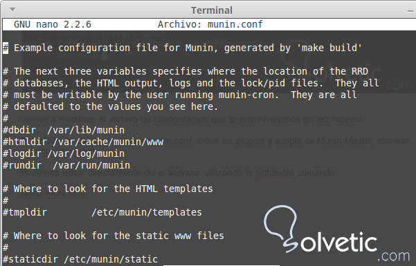nano munin.confAquí configuraremos las distintas opciones del servidor Munin Master: