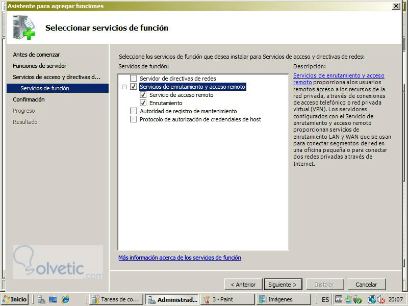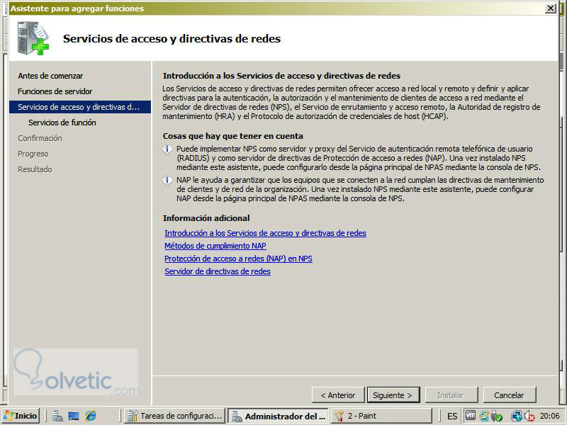 3. Escogemos el la casilla Servicios de acceso y directivas de redes y damos clic en Siguiente.