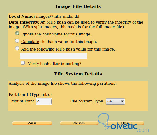 A continuación nos muestra algunos detalles de la imagen que añadimos y nos permite calcular o ignorar la integridad mediante checksum MD5.