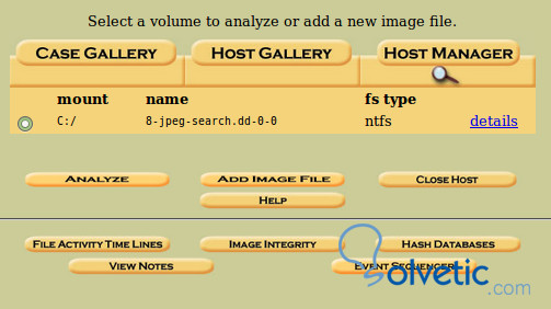 Por lo tanto, al crear un caso se ingresa información como su nombre identificatorio y la persona que investigará los datos. El siguiente paso consiste en asociar al caso uno o más host, los cuales se corresponden con las imágenes que vamos a someter a análisis, o una imagen forense que se ha adquirido previamente del ordenador o servidor a ser analizado.