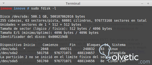 También podemos crear una imagen de disco desde Linux averiguamos cuales son las particiones con los siguientes comandos: