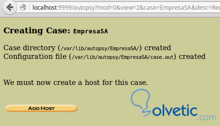 Al finalizar hacemos click en ADD HOST y vamos a la pantalla que nos muestra, el directorio para este host, dentro del mismo caso podemos tener varios host para analizar.
