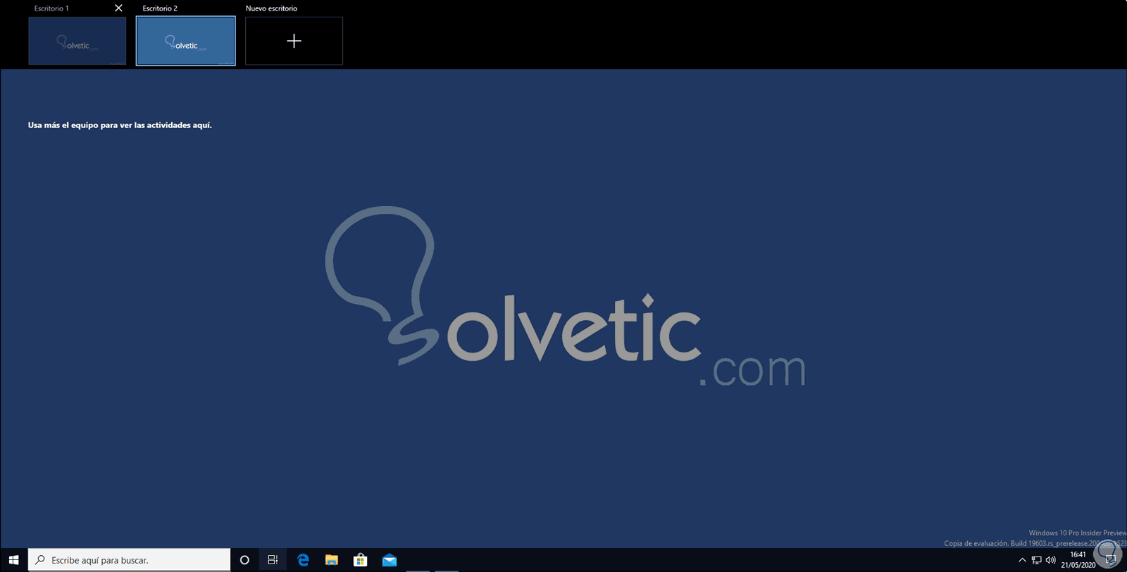 Solvetic te explicará cómo puedes crear y cambiar entre escritorios en Windows 10 así como ver las formas para cambiar entre ventanas abiertas en un solo escritorio activo.
