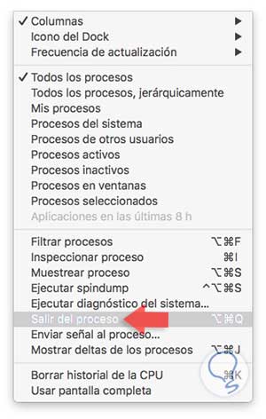 Si en determinado momento el funcionamiento de algún proceso no consideramos que es el adecuado, podemos determinar su salida en el menú de visualización – salir del proceso.