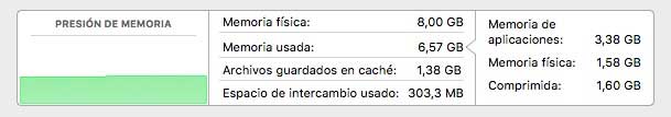 La memoria usada es bastante importante tenerla en cuenta, ya que nos informa sobre la cantidad total de memoria RAM utilizada por aplicaciones y procesos de OS X. Para que la utilización de la memoria RAM sea más eficiente, OS X a veces comprime los datos de la RAM que no se encuentran en uso.