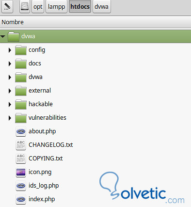 Ahora después de descargar el archivo zip de Damn Vulnerabilty Web Aplication (DVWA), lo descomprimimos y lo copiamos en la carpeta de nuestro servidor web, en ese caso usamos Xampp bajo Linux.