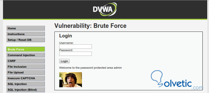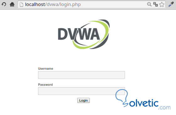 A continuación después de la instalación, cuando volvamos a ingresar a la web http://localhost/dvwa, nos saldrá una pantalla de login: