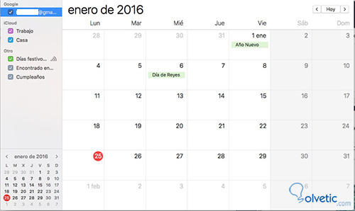 Ahora si abrimos la aplicación Calendario, veremos en el lateral izquierdo que ya aparece Google. De este modo, todos los eventos que asignemos a este calendario se sincronizará con Google.