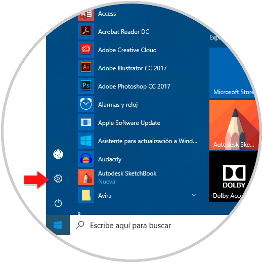 Pulsamos la tecla Windows y luego en la opción Configuración.