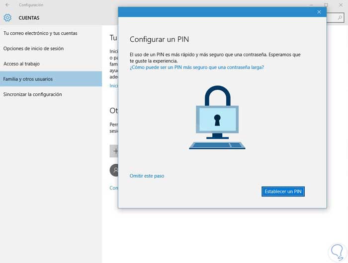 En la siguiente ventana puedes omitir el paso de introducir un PIN en vez de proteger el equipo con una contraseña.