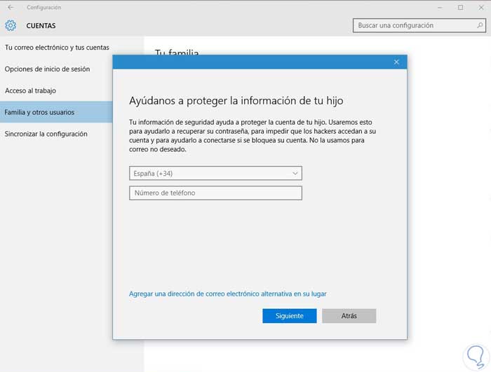 Después de introducir los datos nos pedirá nuestro número de teléfono como medida de seguridad para proteger la cuenta de los pequeños.