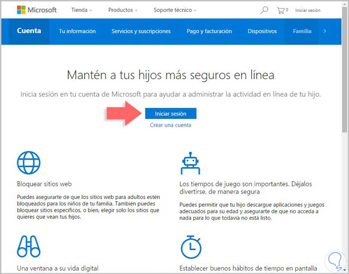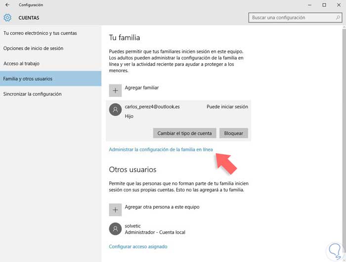 Para consultar la actividad de tu familia y configurarla seleccionaremos “Administrar la configuración de la familia en línea”.