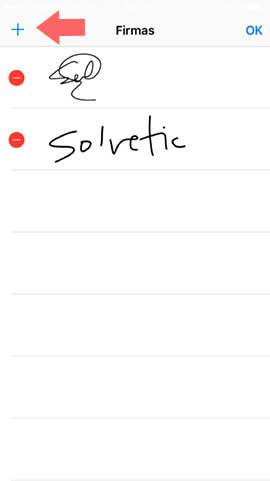 Una caja con su firma se agrega al documento. Inicialmente, es probable que sea un poco grande. Para hacerlo más pequeño, toque y mantenga en una de las esquinas de la caja y se arrastra. Para mover la firma en el lugar correcto en el archivo PDF, toque y mantenga dentro de la caja y arrastrarlo a la ubicación deseada. Repitiendo este método podemos guardar varias firmas y después utilizar la que más nos convenga. Para añadir, le damos al icono “+” de la parte superior izquierda