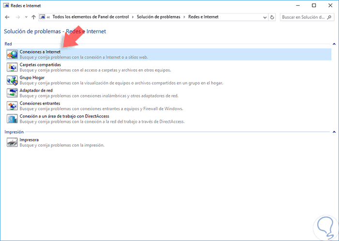 Seleccionamos la opción "Conexiones a Internet" e iniciará el respectivo análisis. De este modo si existe algún error el solucionador de problemas intentará corregir dicho fallo.