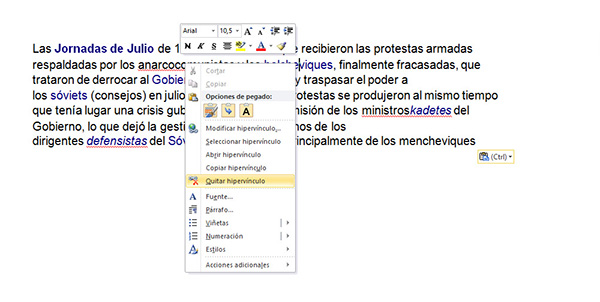 Cuando copiamos algún fragmento de texto de alguna web, es posible que contenga hipervínculos. Un claro ejemplo es cuando entramos en la web de Wikipedia, que los encontramos en la mayoría de sus textos. Al copiar el fragmento de texto en Word, directamente vamos a copiar estos hipervínculos. Si queremos eliminarlos todos ellos o únicamente alguno, podemos realizarlo de la siguiente manera en Windows o Mac.