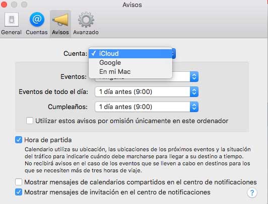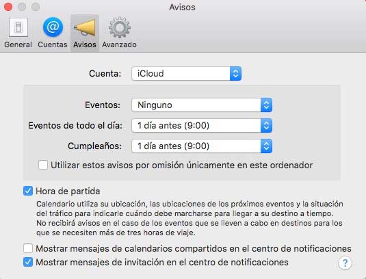 El calendario de nuestro Mac se sincroniza con todas aquellas cuentas que tenemos integradas en Mail. Es posible que los avisos del calendario queramos que se reflejen únicamente en una de las cuentas, o que sean diferentes para cada una de ellas. Para ello podemos crear diferentes tipos de avisos en función de nuestro intereses según el tipo de cuenta.