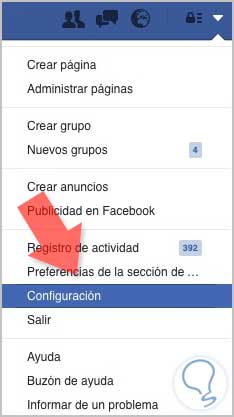 Lo primero que tenemos que hacer es dirigirnos a la página principal de nuestra cuenta. Tenemos que acceder a la sección de configuración situada en el menú desplegable del triángulo invertido en la parte derecha de la pantalla.