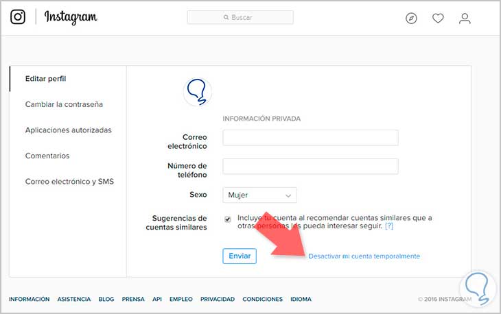Si seleccionamos esta opción, lo que estaríamos indicando es que queremos cerrar nuestra cuenta, pero en el caso de querer volver, poder reactivarla. Lo primero que debemos saber, es que este proceso debemos realizarlo desde un PC ya que desde la aplicación móvil no vamos a poder acceder.