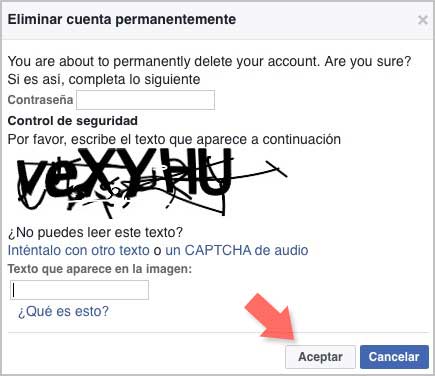 A continuación nos pedirá que introduzcamos nuestra contraseña y rellenar una pregunta que nos piden. Después de esto ya podremos eliminar nuestra cuenta por completo.