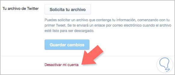 Dentro de la configuración, en la sección de “Cuenta” , tenemos que dirigirnos a la parte inferior donde vamos a poder encontrar la opción de “Desactivar mi cuenta”. Al igual que en Facebook podemos solicitar un archivo con toda nuestra información.