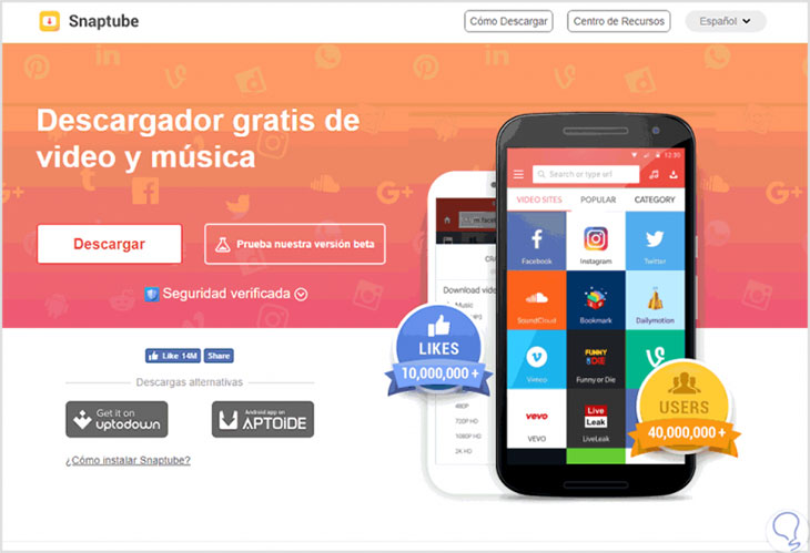 Snaptube es una aplicación que puede ser utilizada desde tu móvil Android, y que te permite descargar vídeos de YouTube y transformarlos a formato MP3.