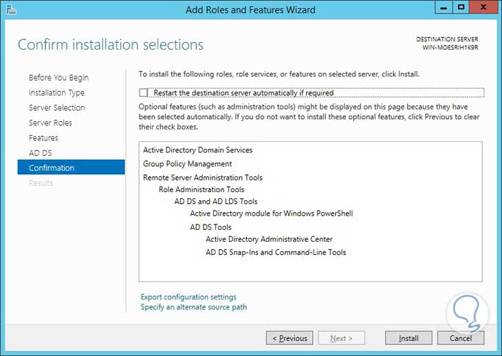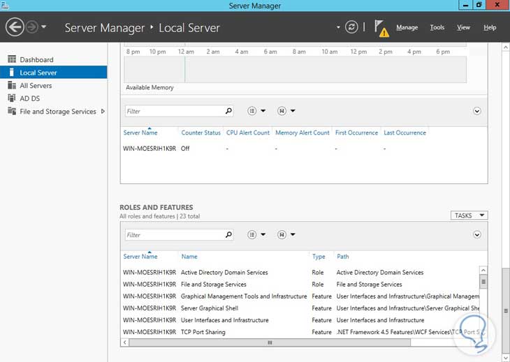 Procedemos a dar clic en Install para instalar nuestro Servicio de Active Directory. En nuestra ventana de Server Manager podremos ver que nuestro servicio de Active Directory está instalado: