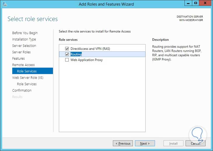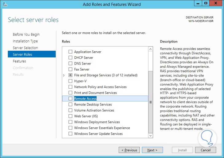 Elegimos las opciones Direct Access and VPN y Routing: