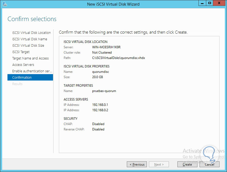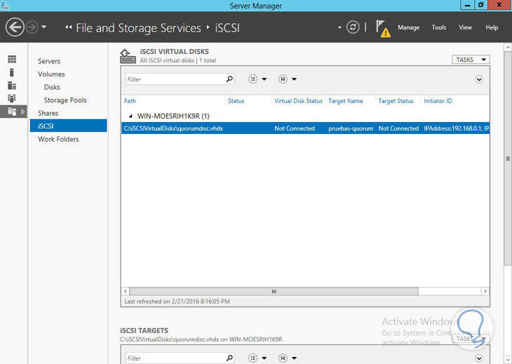 La característica en Windows Server para implementar el Quórum se denomina iSCSI target.