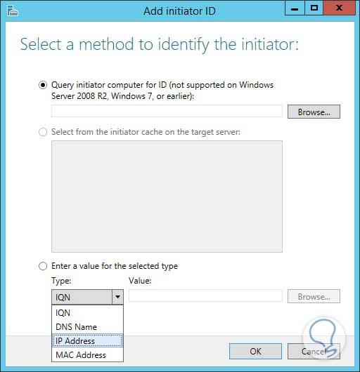 En este punto debemos ingresar la dirección IP donde se encuentra creado nuestro disco virtual iSCSI: