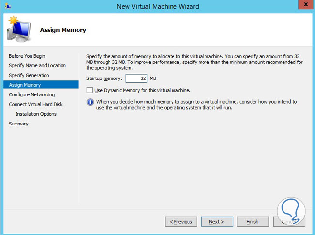 Como vemos podemos ajustar parámetros como memoria, procesador, ubicación, entre otras. Como novedad, Windows Server 2012 R2 presenta una opción adicional a la hora de crear una máquina virtual y esta es conocida como la segunda generación, Generation 2, las máquinas creadas en Windows Server 2008 son conocidas como la primera generación, Generation 1.